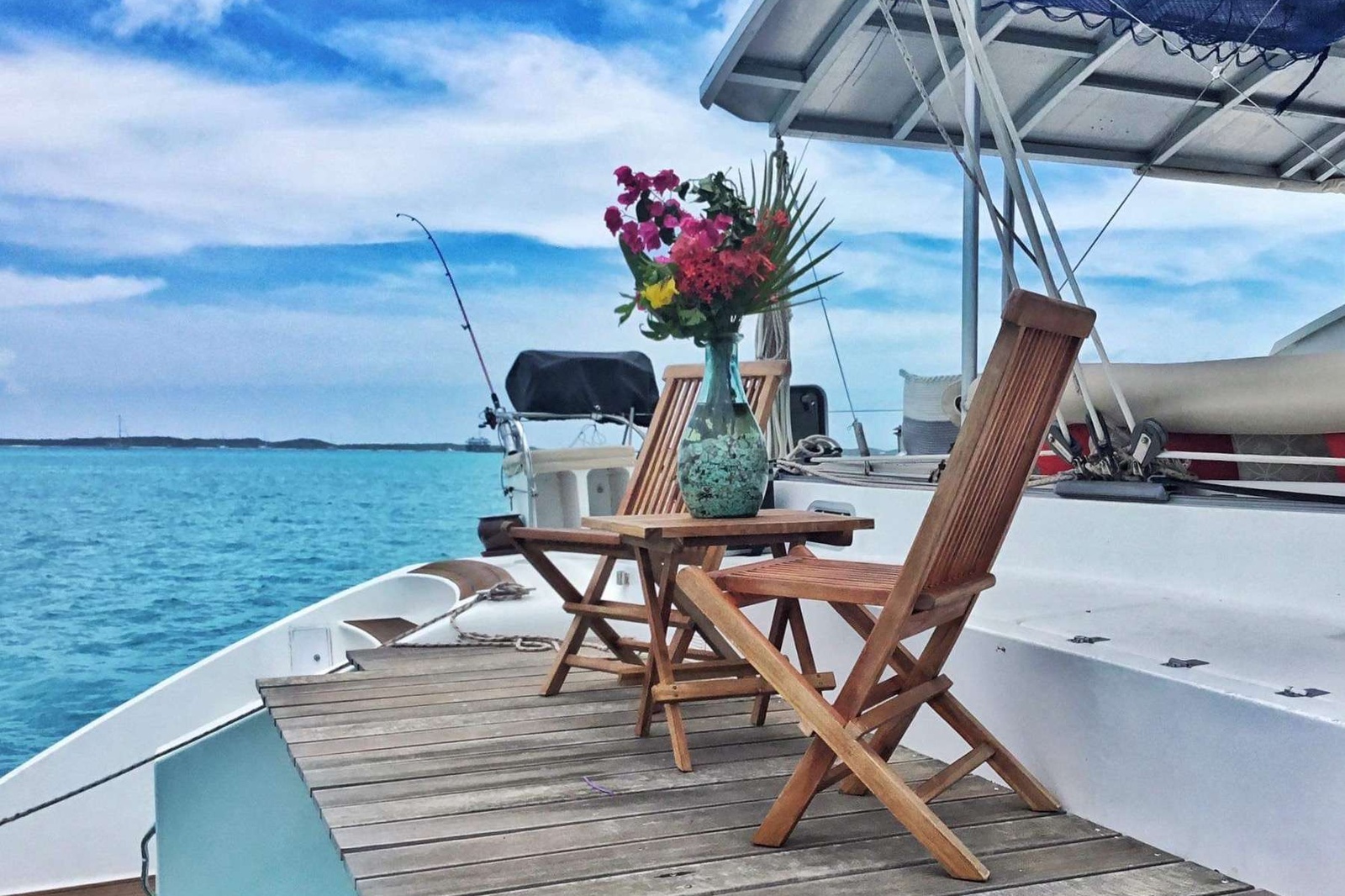 With now over 60,000 miles of Caribbean island hopping experience, 10 Gulf of Mexico crossings, 2 trans-Atlantic crossings, Jason is always eager to share this world with others. A natural teacher and expert “Coconut Husker”, guests are easily entertained and welcomed to have as much of a hands-on, interactive sailing experience as they like. Jason also takes his knack for entertaining from behind the helm, to beneath the hull. As a PADI Dive Instructor an avid deep sea and spearfishing enthusiast, there’s so much to see and and new activities to try with his guidance. There’s nothing more rewarding than enjoying your own fresh catch, and learning the Captain’s famous Smoked Fish recipe!