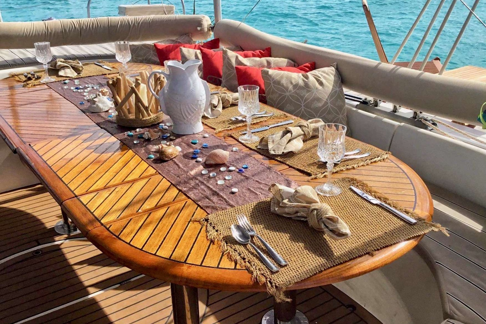 We had the most incredible experience aboard Miss Elizabeth from April 5–12, 2025. From the moment we stepped on board, we were welcomed with drinks and charcuterie, setting the tone for an unforgettable week. Our captain was amazing—knowledgeable, attentive, courteous, and a fantastic storyteller. He guided us to all the must-see spots like the Baths, caves, bubble pools, the Soggy Dollar, and even snorkeled with us, pointing out sea life along the way. He made everything seamless, from mooring to customs. Katie, our crew and chef, was nothing short of phenomenal. The meals she prepared were over the top—homemade pasta and bread, fresh snapper, seared tuna, surf and turf, and stuffed French toast breakfasts that had us looking forward to every meal. She remembered everyone’s preferences and made each dish with care. The yacht was clean, comfortable, and spacious, with plenty of shaded areas to relax. The crew truly made this trip special—we even invited them to join us after dinner for storytelling. The pace of the trip was perfect, with flexible daily itineraries and a great mix of adventure and relaxation. The only downside was the expense—we’d do this more often if it weren’t so pricey. That said, I would absolutely charter Miss Elizabeth again. The experience was exceptional thanks to the wonderful crew and thoughtful touches throughout. - Snyder