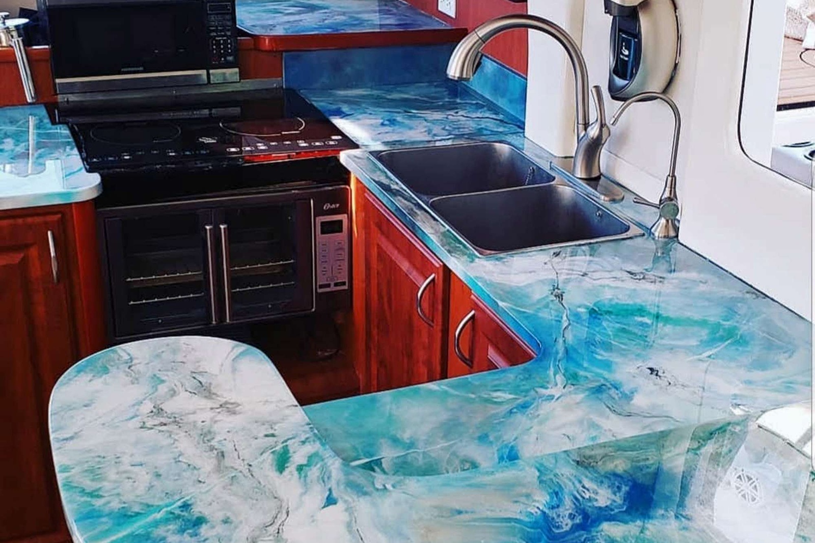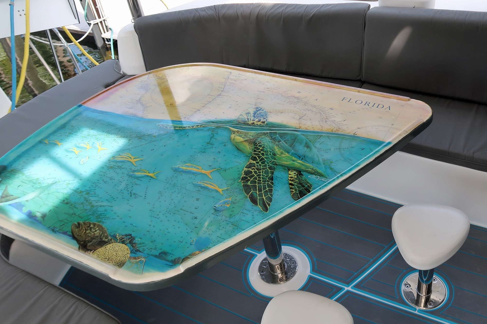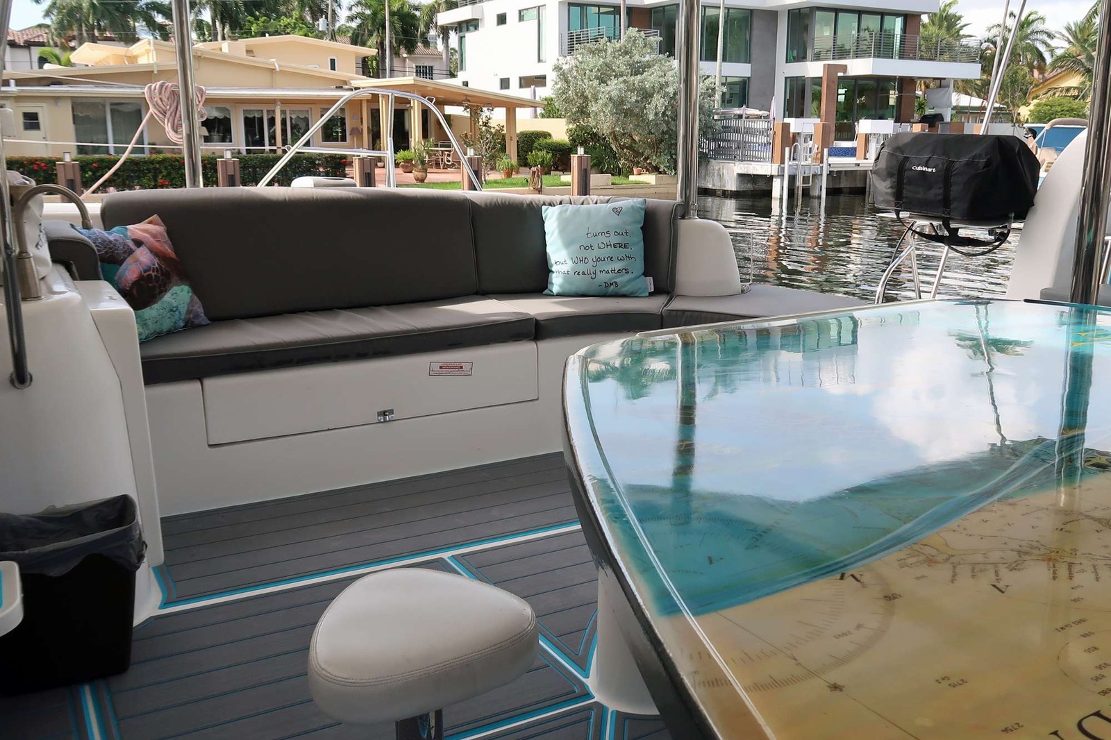 Three queen ensuite cabins and a handcrafted cockpit table invite connection and relaxation.