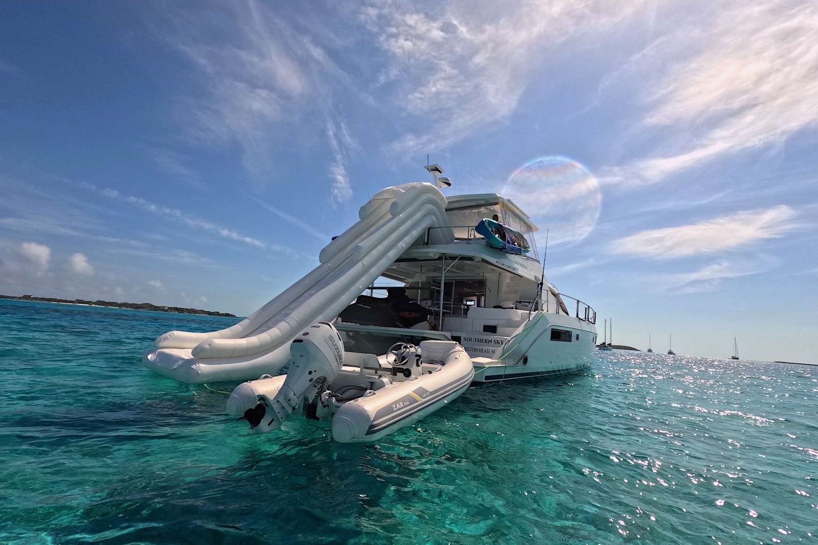 Southern Sky’s giant inflatable waterslide brings out everyone’s playful side — perfect for making a splash between anchorages.
